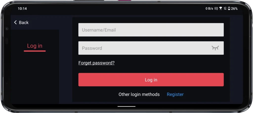 Step 3: On the login screen, tap Register to create a new account, then log in.