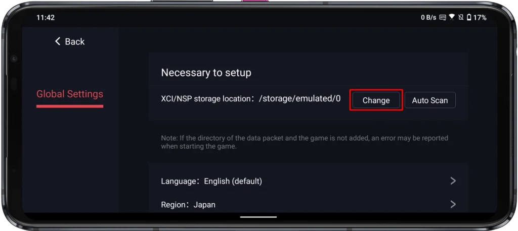 Step 6: Tap the Change button next to the XCI/NSP storage location.