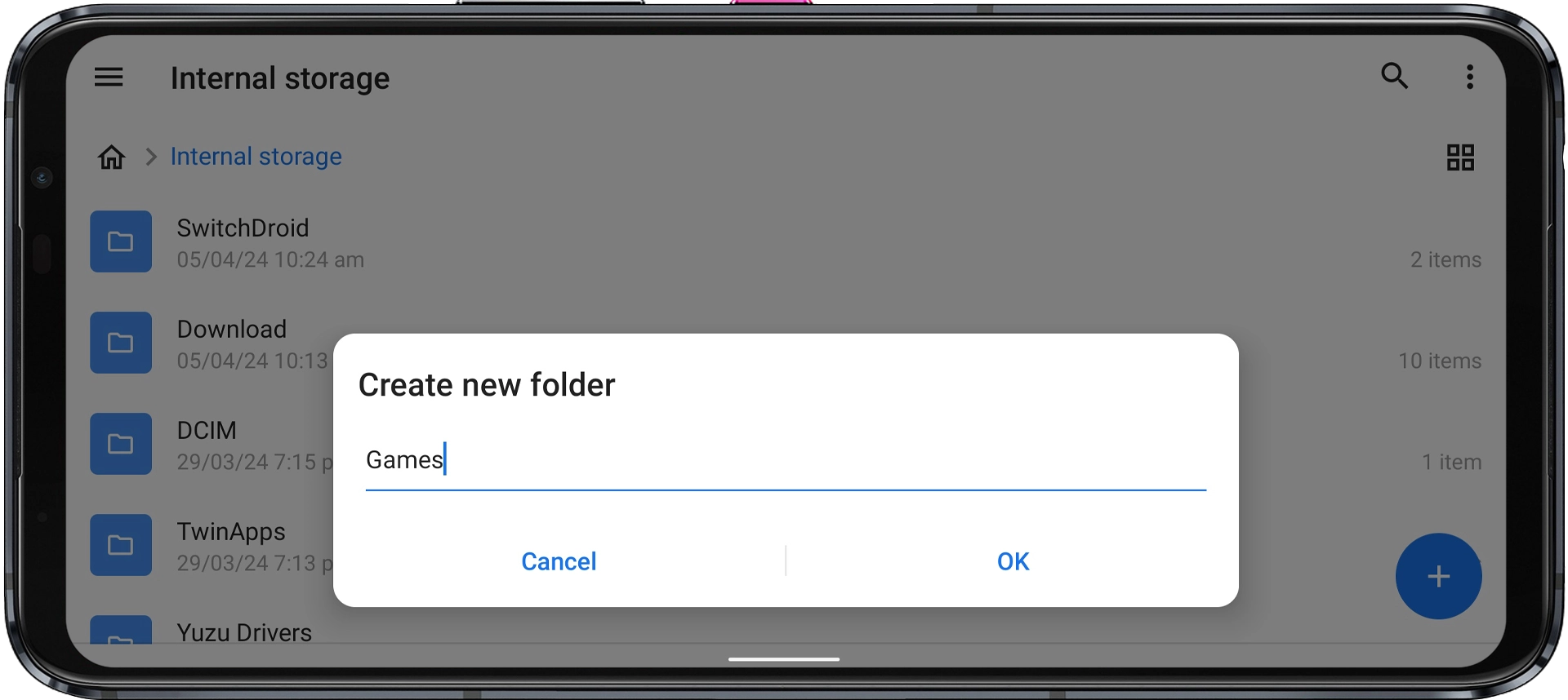 Step 2: In your Internal Storage, create a new folder and name it “Games” (or anything you’ll easily recognize).