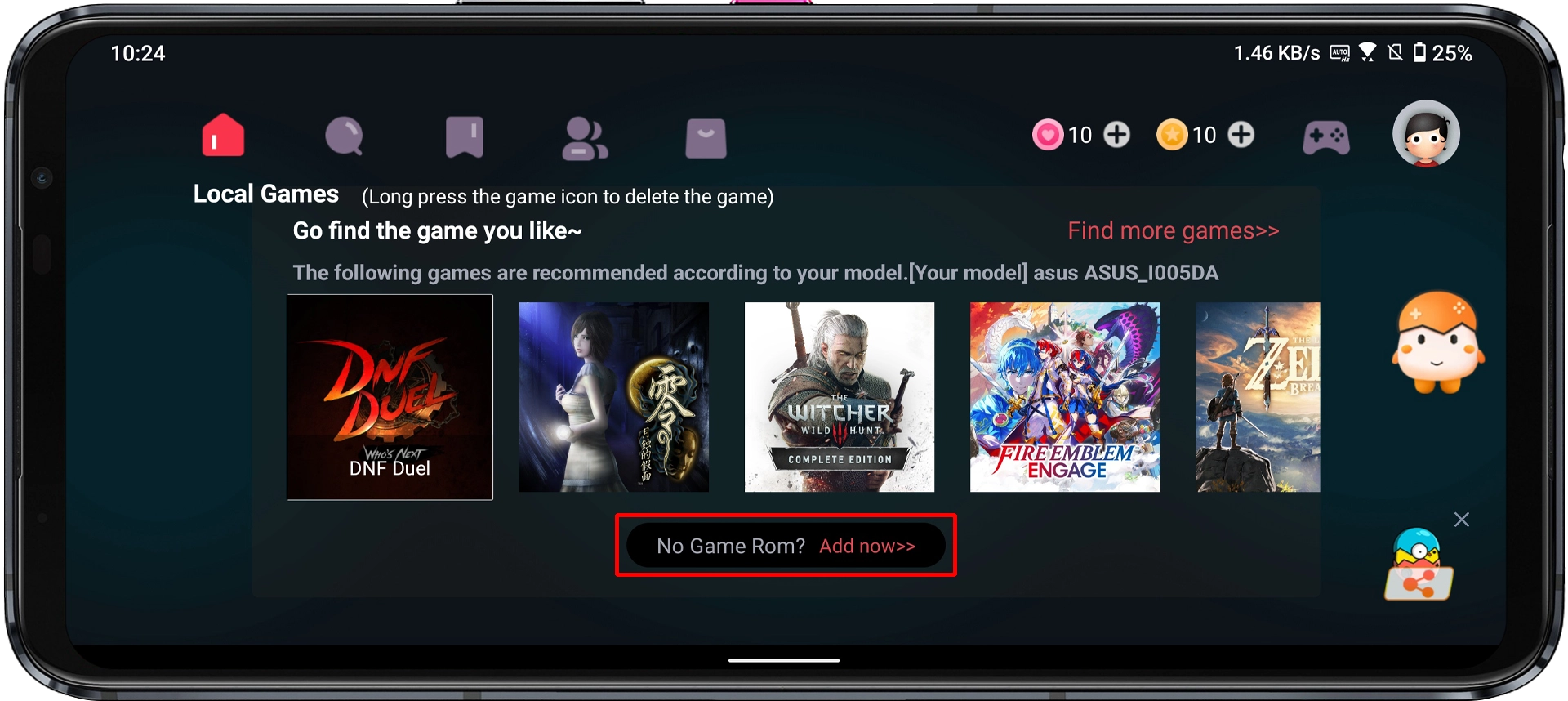 Step 5: Once the download finishes, tap “No Game ROM? Add now >>”.